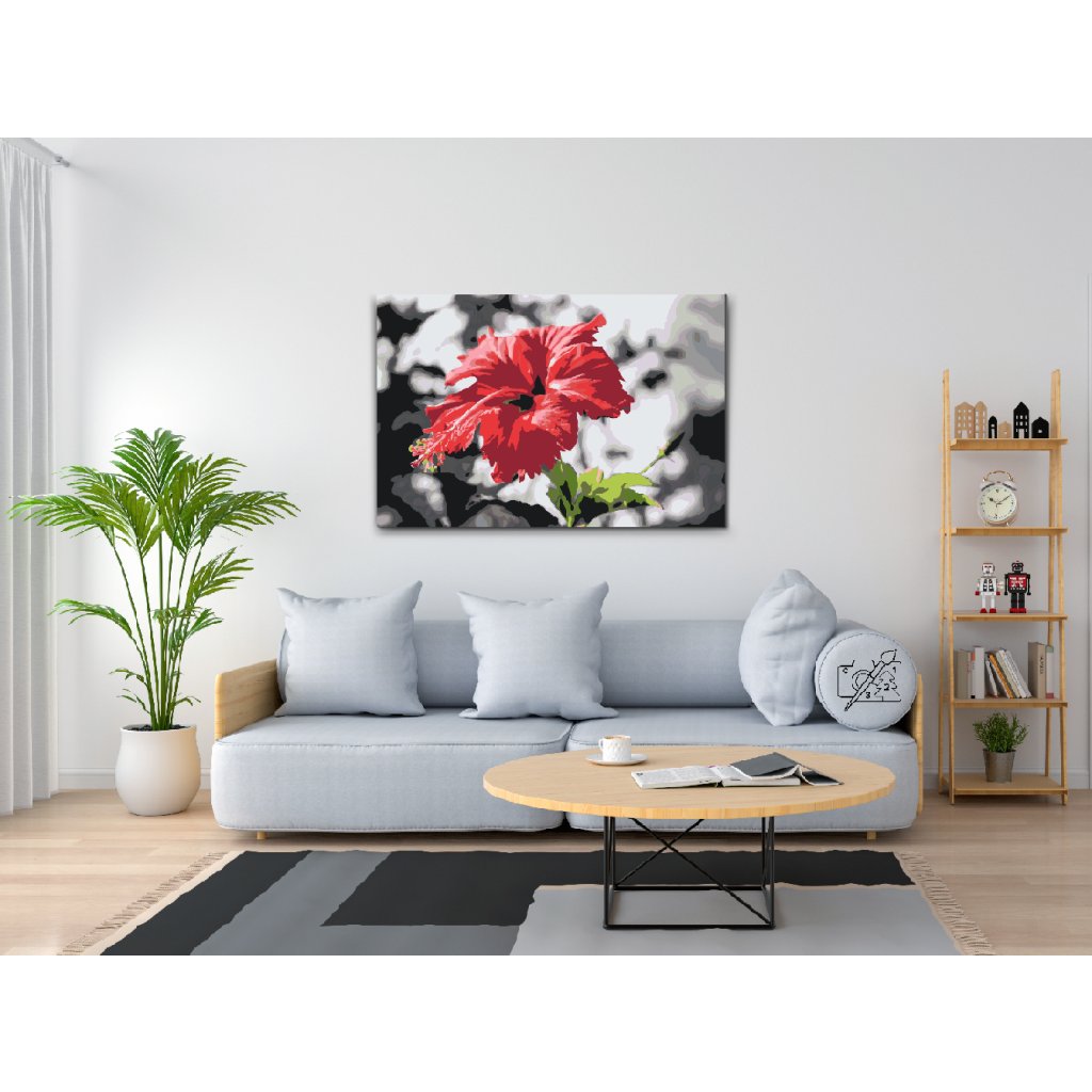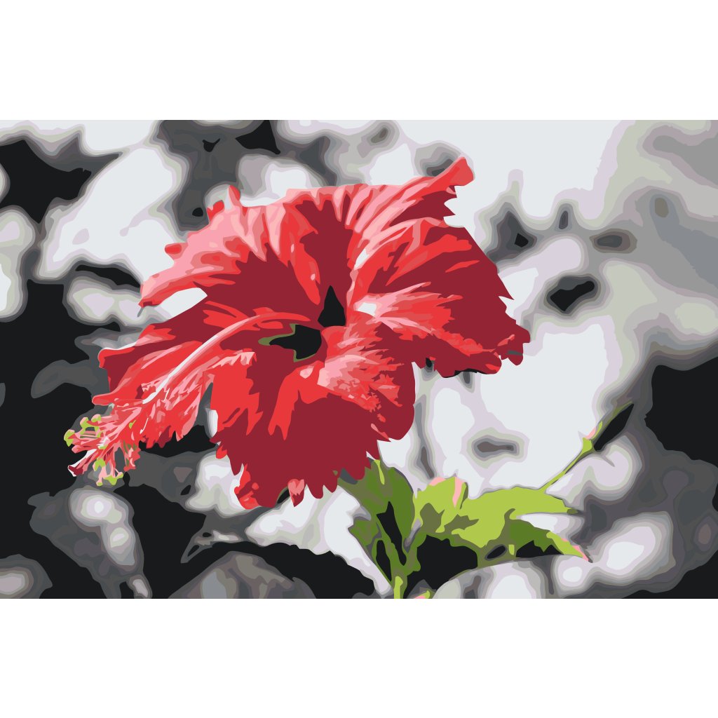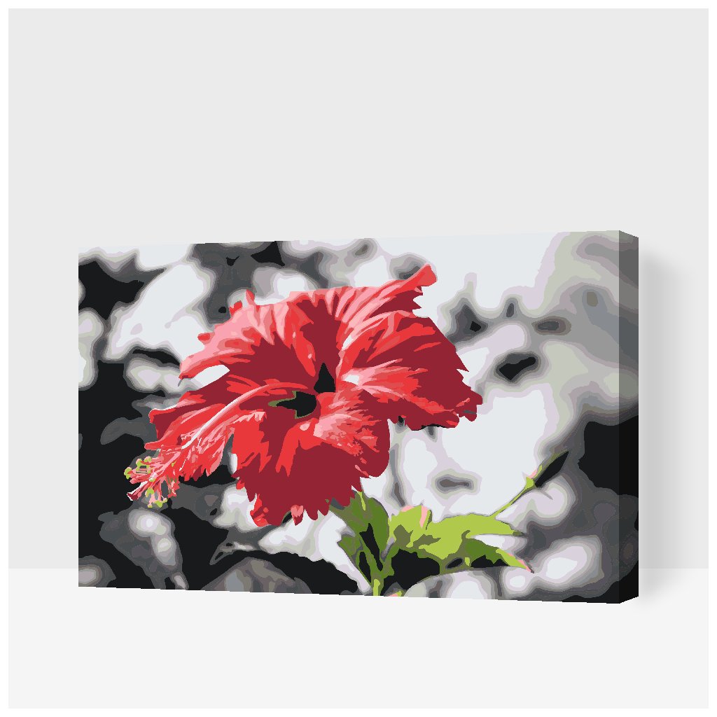 Slikanje po brojevima - Crveni cvijet na sivoj pozadini