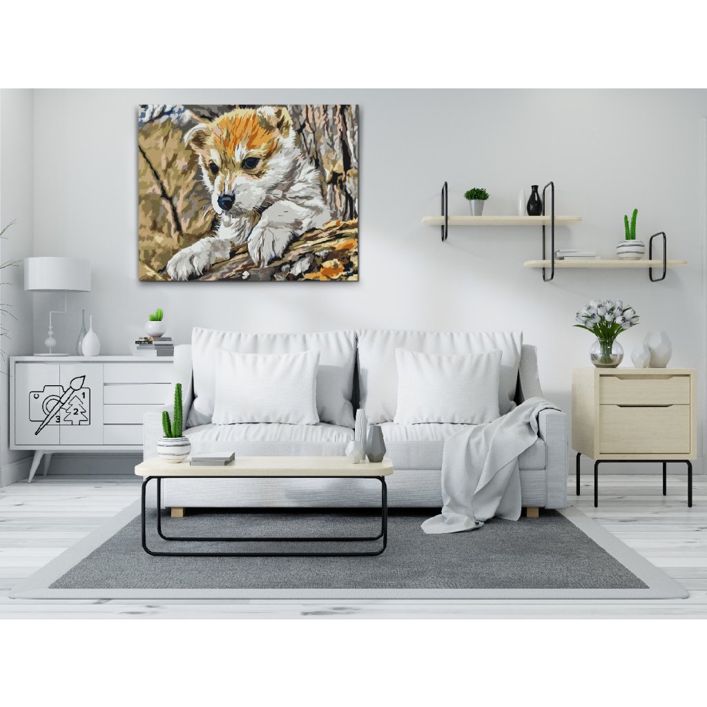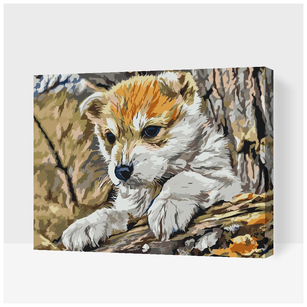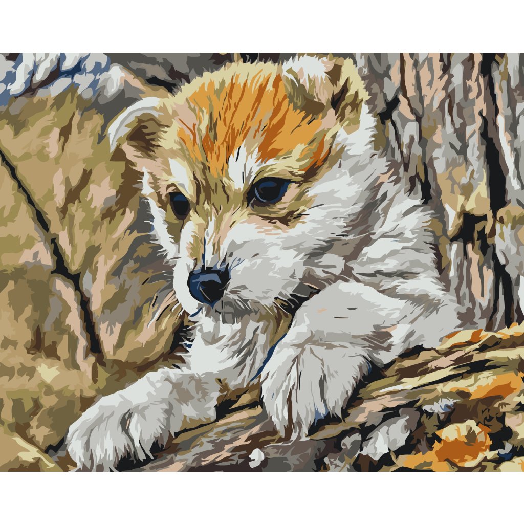 Slikanje po brojevima - Štene se igra u šumi